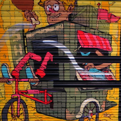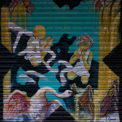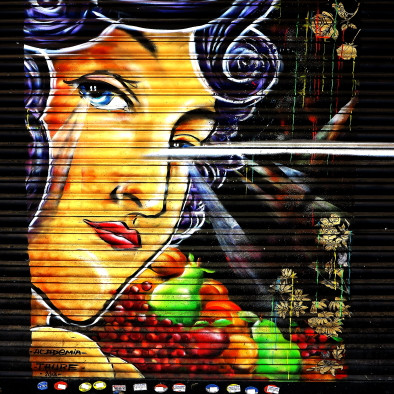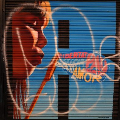 Barcellona, Giugno 2014. Mi trovavo a Barcellona per un breve soggiorno e per festeggiare il primo compleanno di mio nipote Gabriel. Il mattino del giorno nove, passeggiando per Gracia, entro nel “Mercat de l'Abaceria Central”; una struttura primo Novecento dove si concentra il mercato di ogni genere alimentare e dove le svariate derrate vengono esposte in modo particolarmente folcloristico. In un primo momemento era questo l'aspetto che, fotograficamente parlando, mi incuriosiva; successivamente, il mio interesse mutò poiché fui attratto da alcune serrande, parzialmente alzate, che facevano intravedere intriganti immagini (Street Art) e che si sarebbero abbassate per la prevista chiusura giornaliera. Ritornato sul posto nel primo pomeriggio e in orario di chiusura, ho fotografato queste serrande e quanto in ciascuna di esse era stato espresso dai vari writers o graffitari. Trovo che abbellire con buone immagini le serrande dei negozi di una città sia una bella usanza e questa è anche una prerogativa di Barcellona. Oggi vengo a sapere che questo Mercato è stato demolito per essere forse ricostruito e riprogettato; se non sostituito da un verde parco. Non credo che rivedremo più queste immagini. Quindi, lunga vita alla fotografia. Comunque, ho fiducia nel buon gusto e maestria Catalana.