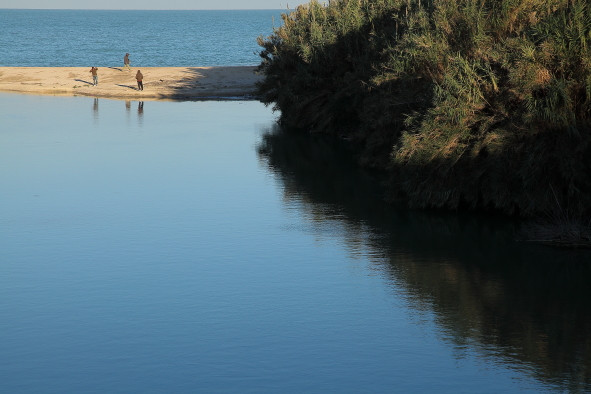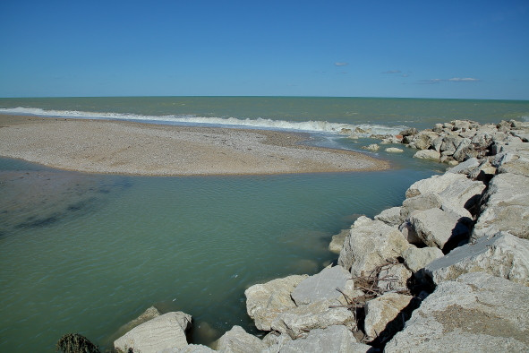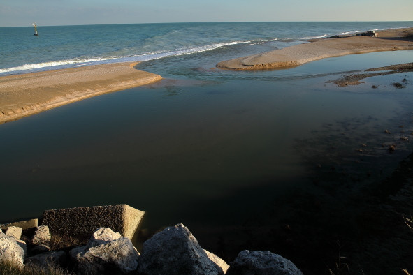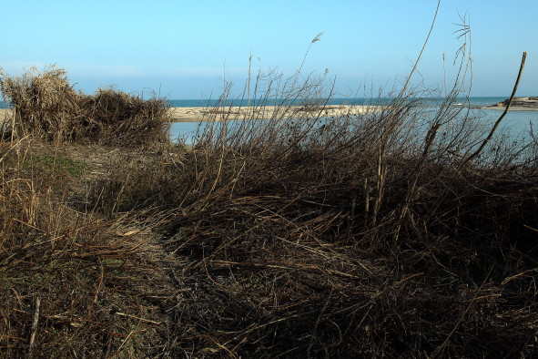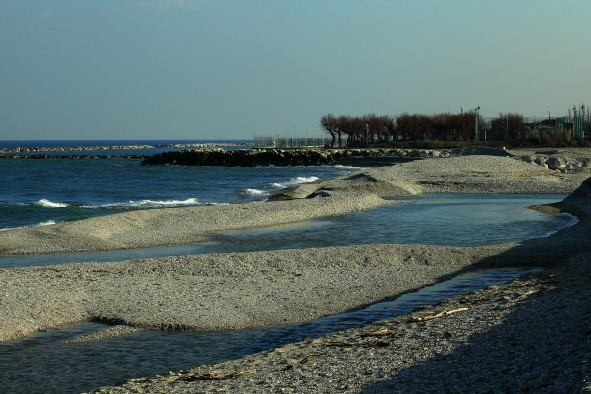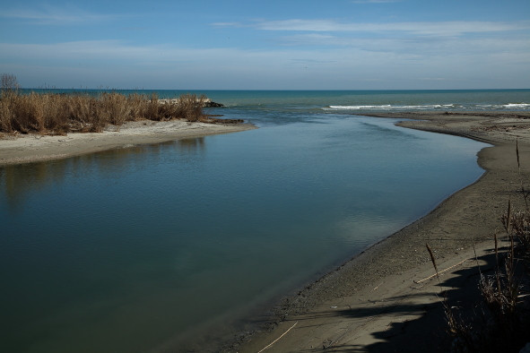 Ogni foce di un fiume è la fine di un percorso: ma, come ogni fine, non lo è mai in senso assoluto e definitivo: quando le sue acque arrivano finalmente al mare e si uniscono a quelle salate, insieme continueranno a vagare nell'arcano letto di un fiume ancor più grande e profondo, complici di correnti e maree. Gli aspetti che più mi incuriosiscono di ogni foce sono i luoghi dove si formano le esili lingue di sabbia, nonché il loro continuo mutare sulla spinta dei flussi di detriti che, di volta in volta, con le piene torrenziali e le correnti marine, vengono a sedimentarsi, creando sempre nuove linee di confine. Come non soffermarsi anche su quelle sponde battute dai venti salmastri, dove rovi, sterpaglie, tamerici contorte e canneti, nascondono spesso aspetti di degrado sociale e presenze di passaggi non solo faunistici? Comunque, la foce di ogni fiume è pur sempre viva nei suoi molteplici aspetti naturali; a volte a delta, a volte ad estuario, ma sempre più intrigante di ogni vergine sorgente: sensuale con le sue lente e sinuose ramificazioni, con acque non sempre pacate nel loro confondersi col respiro del mare.